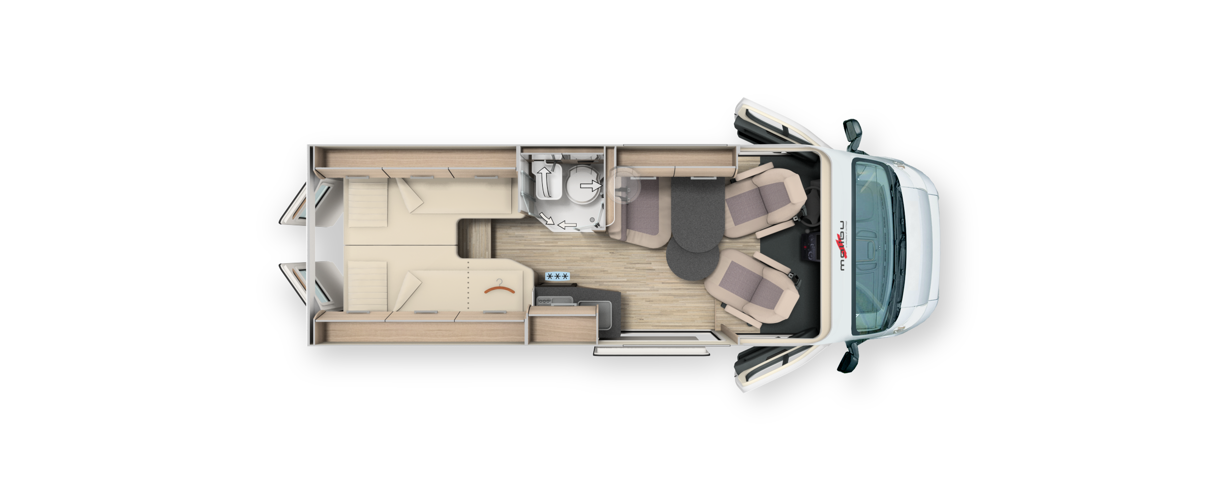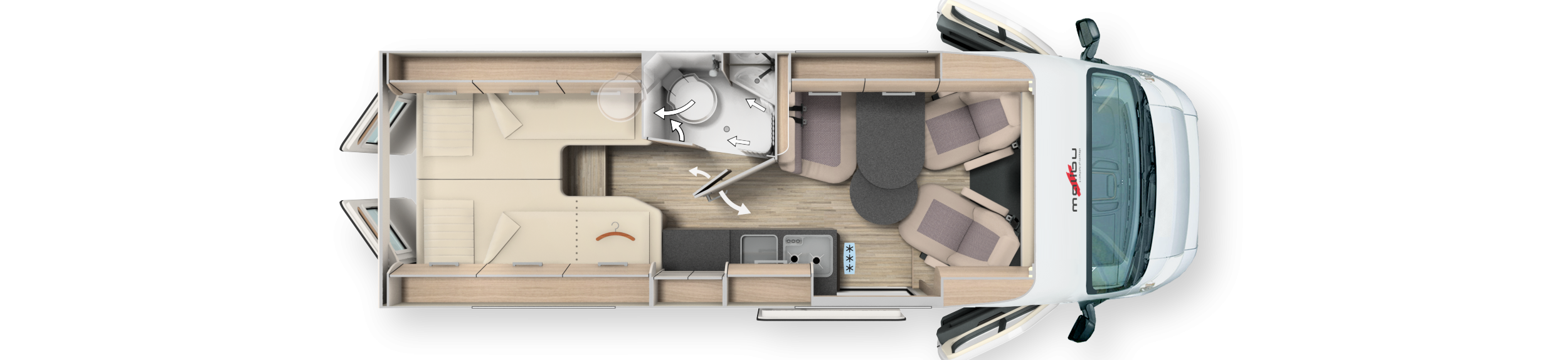 - Ganzjahrestaugliche Isolierung und sinnvoll platzierte Versorgungsbereiche für komfortables Reisen.
