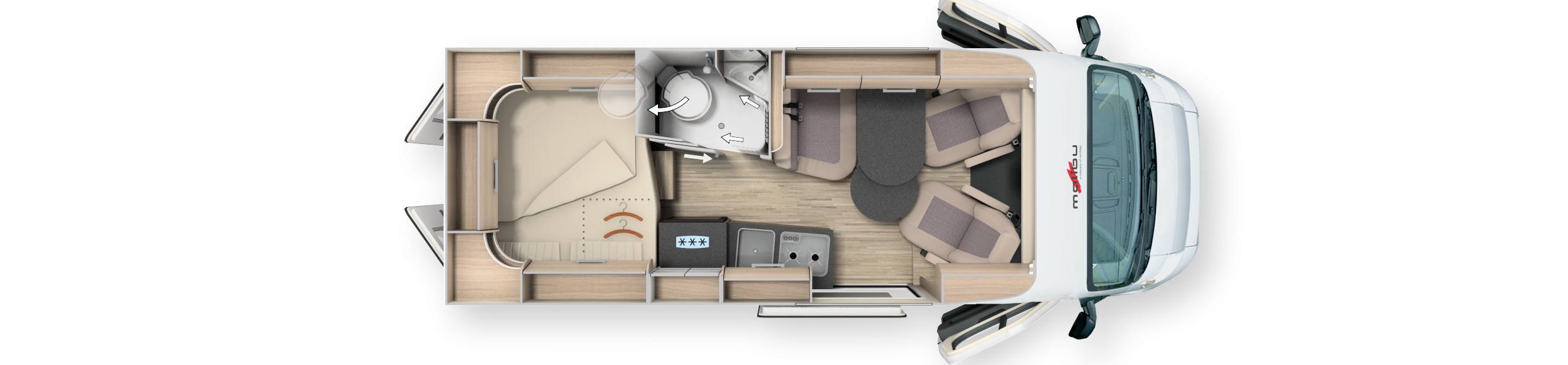 - Großzügige, gut erreichbare Stauraumlösungen für entspanntes Reisen